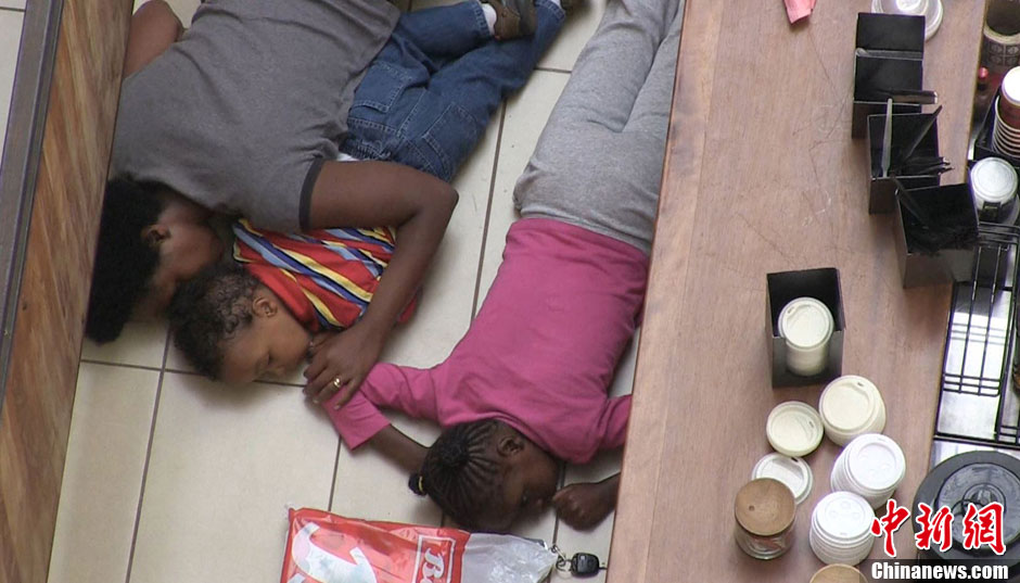 据外媒报道,肯尼亚政府官员称,目前已有59人在首都内罗毕商场袭击事件中身亡。该名官员还指出,目前仍有人质被武装分子劫持,这使得军方的解救行动变得复杂。另据中国驻肯尼亚大使馆22日证实,截至当地时间上午10时,已有一名中国公民在内罗毕韦斯特盖特购物中心的袭击事件中遇难。图为躲避在购物中心里的平民。(视频截图)