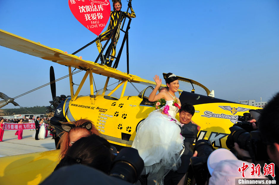 沈阳法库飞行大会“空中婚礼” 场面浪漫夺眼球