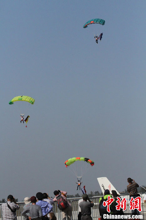 沈阳法库国际飞行大会举行跳伞表演