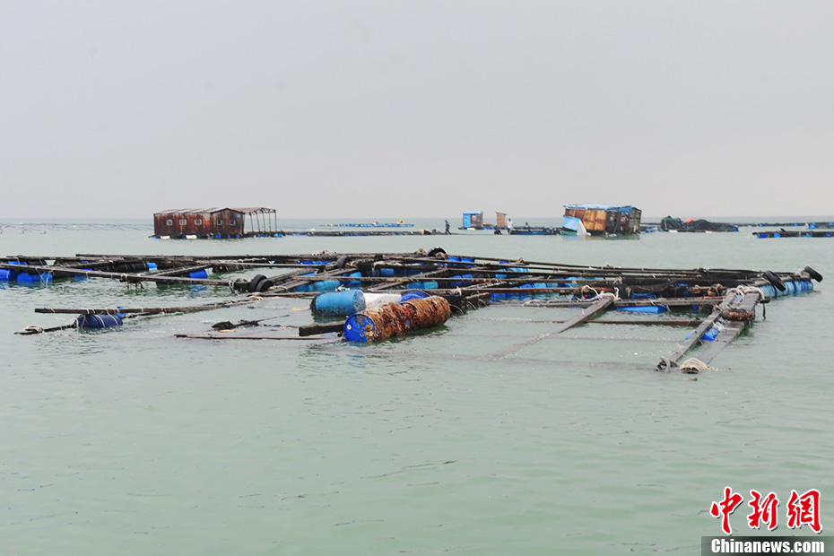 9月23日早晨,台风“天兔”掠过深圳,南澳渔民受灾,海上部分渔排被狂风摧毁。目前南澳渔民已展开生产自救。 中新社发 陈文 摄