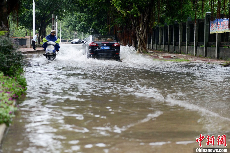 9月23日上午,台风“天兔”带来暴雨致福州多路段积水,市民出行困难。中新社发 王东明 摄