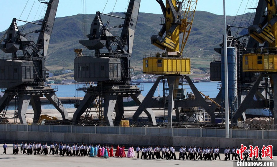 当地时间2013年9月22日,俄罗斯与朝鲜重开了一段长约54公里的铁路。该铁路段从俄罗斯东部边境城市哈桑(Khasan)通往朝鲜罗津(Rajin),全长54公里,将用来输出煤炭,并输入来自韩国和其他亚洲国家的商品。图为朝鲜民众在铁路旁。图片来源:CFP视觉中国