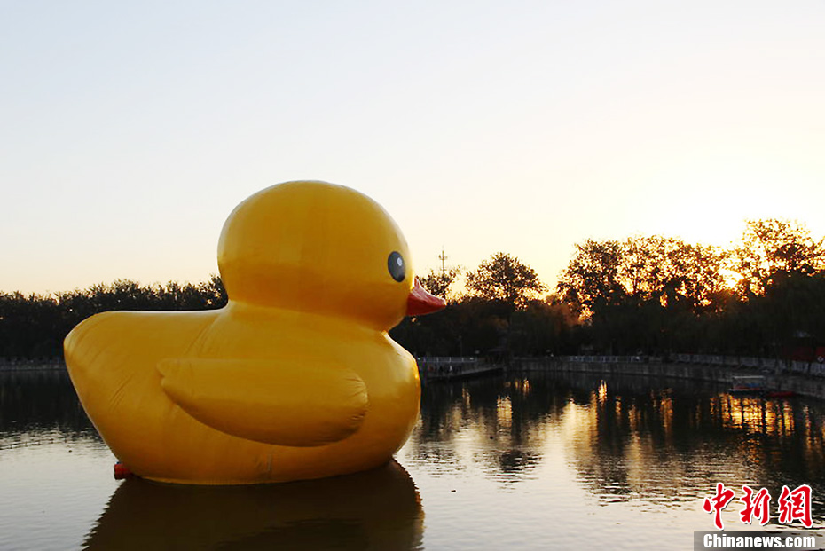 2013年09月26日,北京,大黄鸭亮相北京颐和园,正式与游客见面。 图片来源:CFP视觉中国