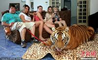 巴西“土豪”家庭养七只老虎 猛兽乖巧似“大猫”