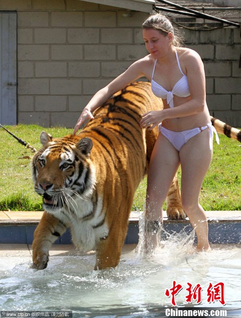 2013年9月25日消息(具体拍摄时间不详),巴西马林加,巴西一个家庭已经不满足于饲养猫狗作为宠物,而是饲养了七只老虎。Aryas Borges最初与老虎结缘是因为拯救了两只在马戏团处境恶劣的老虎。老虎就像他的家庭成员一样,和他的三个女儿一起吃饭、洗澡、玩耍,从小一起长大。如今这些“大猫”在他的家里生活的非常快乐,和他的家庭积累了非常深厚的感情。这种猛兽在他们面前展现出难得温柔的一面。图片来源:CFP视觉中国