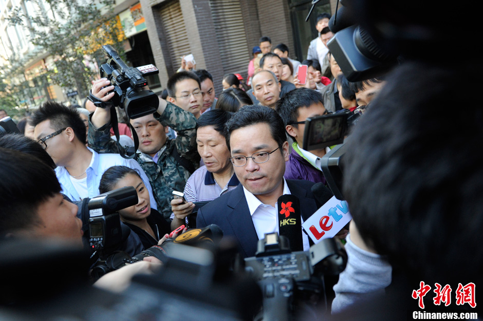 9月26日,北京海淀法院将对李某某等五人强奸一案进行公开宣判。当日上午9时30分公开宣判被告人李某某、王某、魏某某(兄)、张某某、魏某某(弟)强奸一案。被告人李某某犯强奸罪,被判处有期徒刑十年。图为记者围堵李某某家法律顾问兰和。中新社发 廖攀 摄