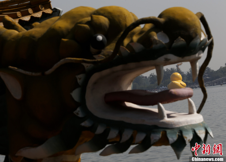 正版“大黄鸭”正式亮相 颐和园上演“龙抓鸭”