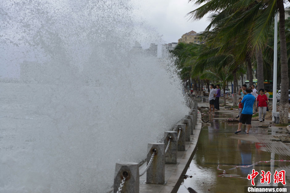 台风“蝴蝶”来袭 三亚海边狂风掀巨浪