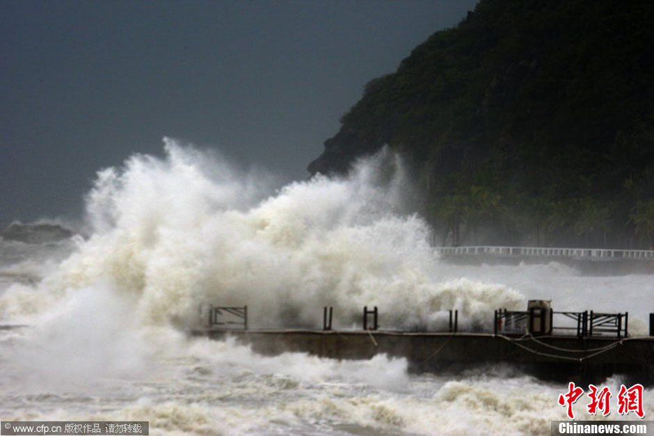 台风“蝴蝶”来袭 三亚海边狂风掀巨浪