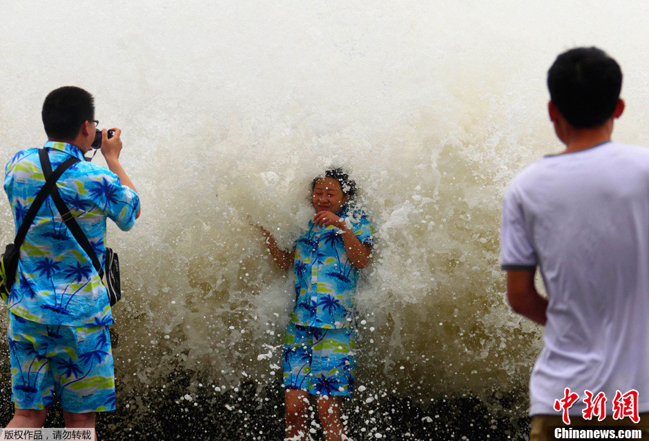 “蝴蝶”携狂风袭扰三亚 游客与大浪“合影”