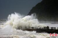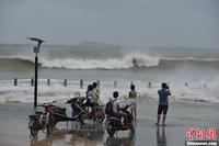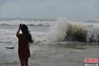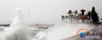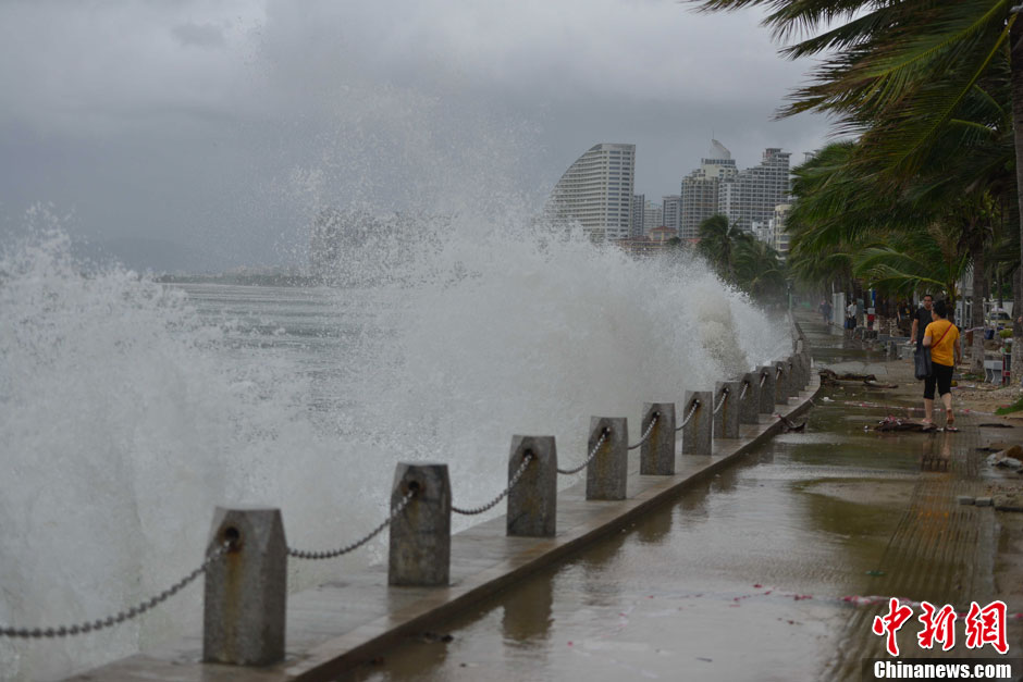 台风“蝴蝶”来袭 三亚海边狂风掀巨浪
