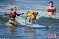 美国举办狗狗冲浪比赛 汪星人上演水上大PK