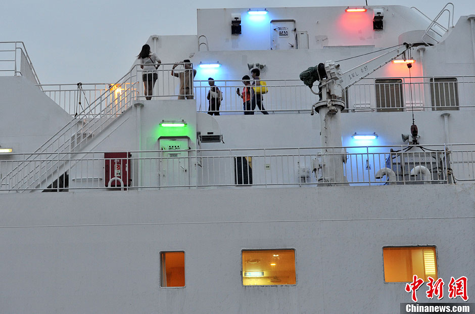 9月30日,搭载着119名旅客和45个标准集装箱,“中远之星”号于当日晚上6点驶离厦门国际邮轮中心,开往高雄。这也标志高雄开通首个和大陆连接的海上常态化客运定期班轮航线。 据介绍,“中远之星”将在每周一晚上6点从厦门出发,周二上午9点左右到达高雄,实现“朝发夕至”。图为游客在船上拍照留念。中新社发 吕明 摄