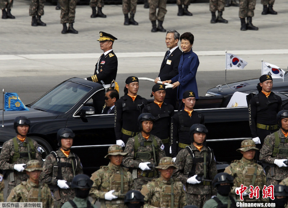 韩国建军65周年纪念仪式10月1日在城南首尔机场举行,有1.1万名兵力、190余辆地面装备和120架飞机参加,创下了自2003年以来的最大规模。韩国总统朴槿惠和美国国防部部长哈格尔等出席了活动。