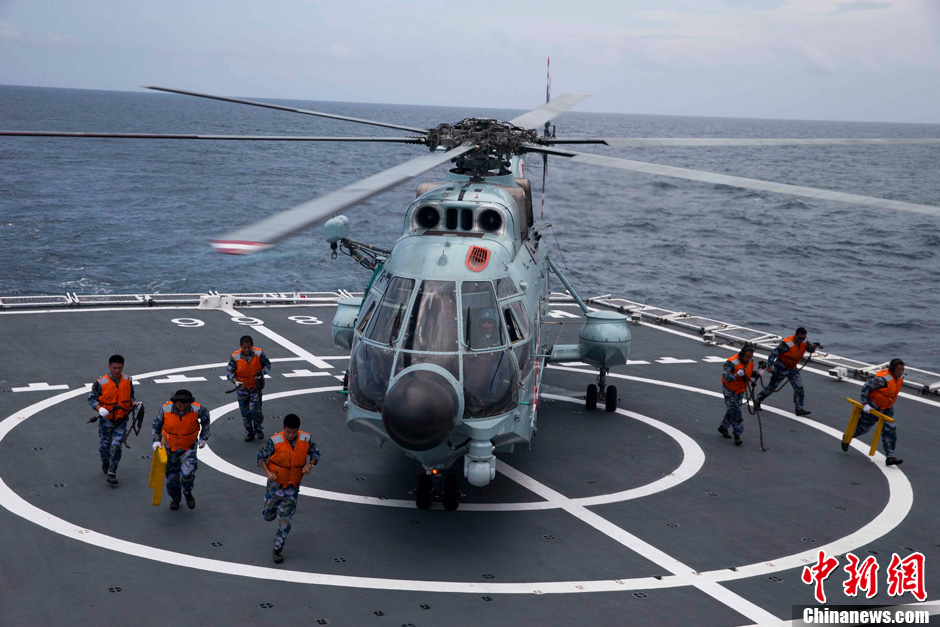 10月3日,中国海军继续在西沙海域开展立体搜救。当日,268名在台风“蝴蝶”中遇险的渔民从西沙琛航岛返抵海南三亚,截至3日中午,仍有58人下落不明。中新社发 张浩 摄