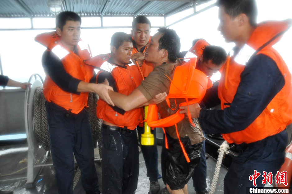 9月29日,第21号强台风“蝴蝶”正面袭击西沙群岛,造成数十艘渔船搁浅倾覆,部分渔民落水失踪。海军南海舰队成立海上搜救指挥部,第一时间派出舰船和直升机奔赴受灾海域,经过海空搜救、军地联动、立体输送,已成功解救落水渔民12人,打捞遇难者遗体4具,并组织286名地方人员安全后送至三亚。图为海军官兵冒雨营救落水渔民。中新社发 邵发波 摄