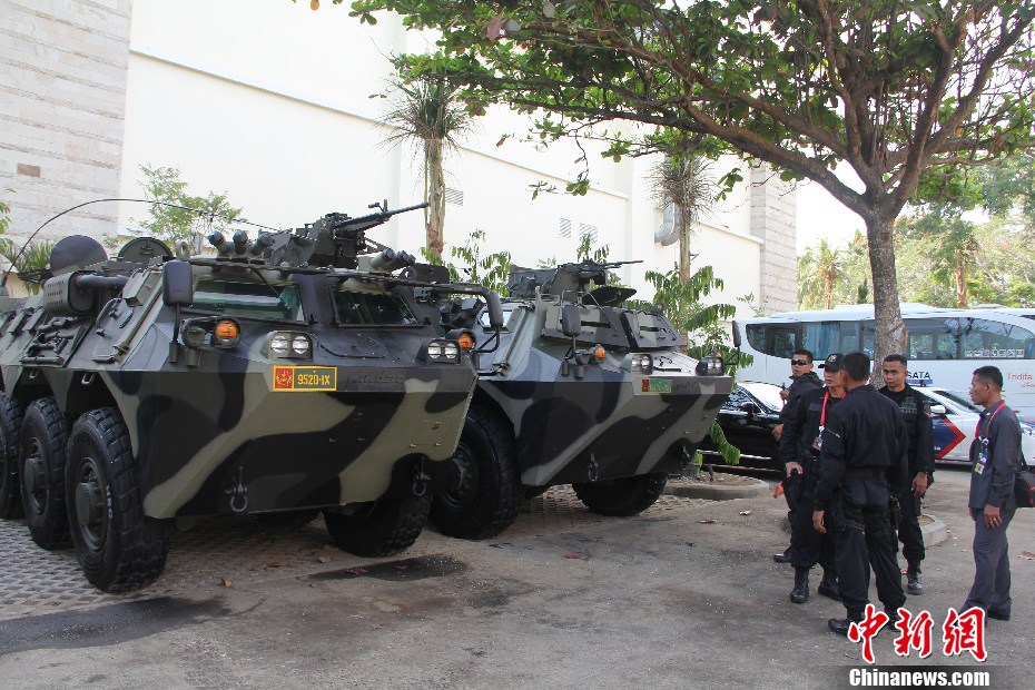 印尼军方动用重机枪装甲车护卫APEC峰会主会场