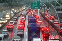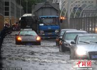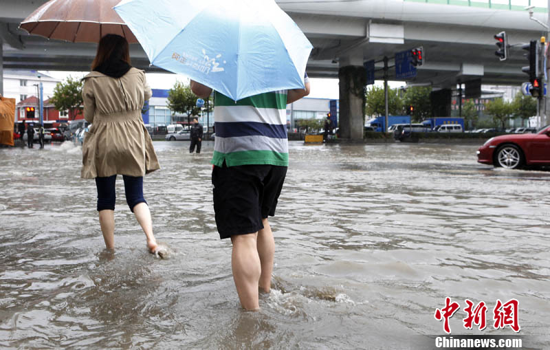 上海遭遇台风暴雨袭击 道路积水严重