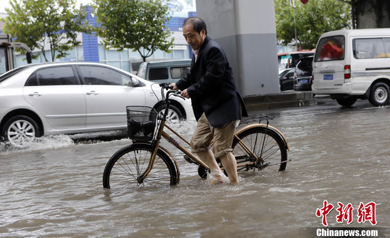 上海遭遇台风暴雨袭击 道路积水严重