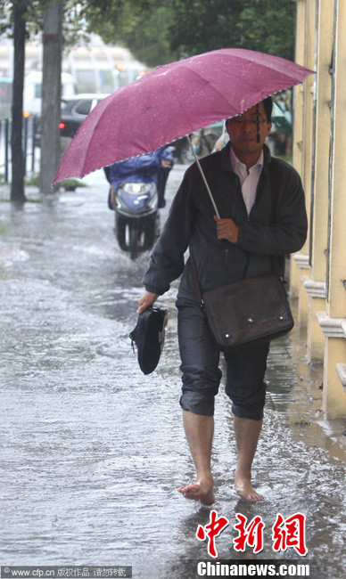 上海遭遇台风暴雨袭击 道路积水严重