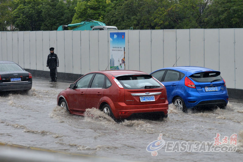 上海遭遇暴雨天气 部分道路积水严重