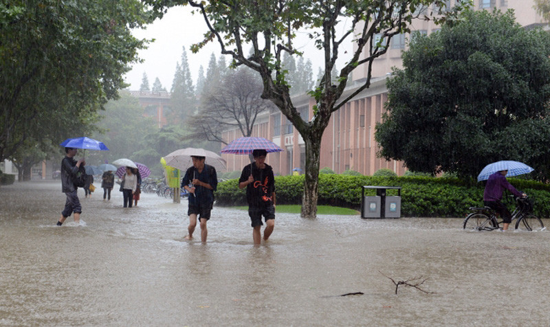 上海遭遇暴雨天气 同济大学多处被淹