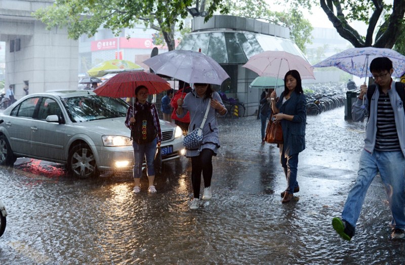 上海遭遇暴雨天气 同济大学多处被淹