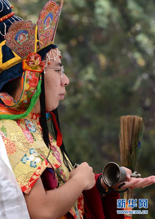 10月8日,班禅在火供法会上。当日,全国政协常委、中国佛教协会副会长班禅额尔德尼·确吉杰布在西藏日喀则市德庆格桑颇章举行“火供”宗教仪式。“火供”是藏传佛教密宗里的一种特殊供养仪轨,是用焚烧贡品、谷物、树枝、咒符等供养神灵的祭祀方式之一,通常用来祈求祥和平安,也用来超度亡灵、降妖伏魔。觉果 摄 图片来源:新华网