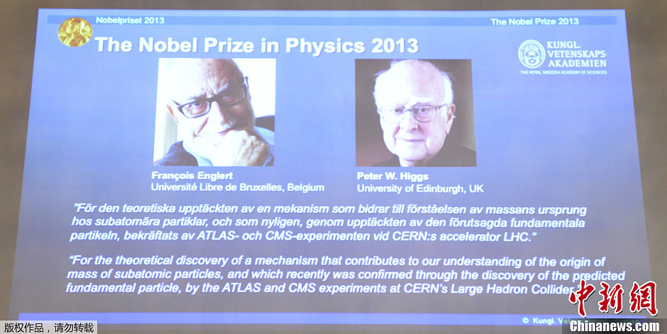 2013诺贝尔物理学奖揭晓 “上帝粒子”预测者获奖
