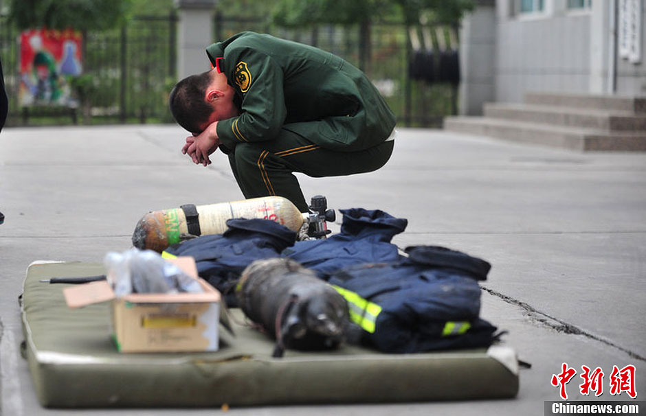 10月11日凌晨2时许,北京石景山区苹果园南路东口喜隆多商场发生火灾。大火燃烧了7个多小时,在300名消防队员的努力下大火终被扑灭。此次大火造成刘洪坤、刘洪魁两名消防队员殉职。图为刘洪魁的战友看着战友的遗物十分伤心。陶冉 摄 图片来源:CFP视觉中国