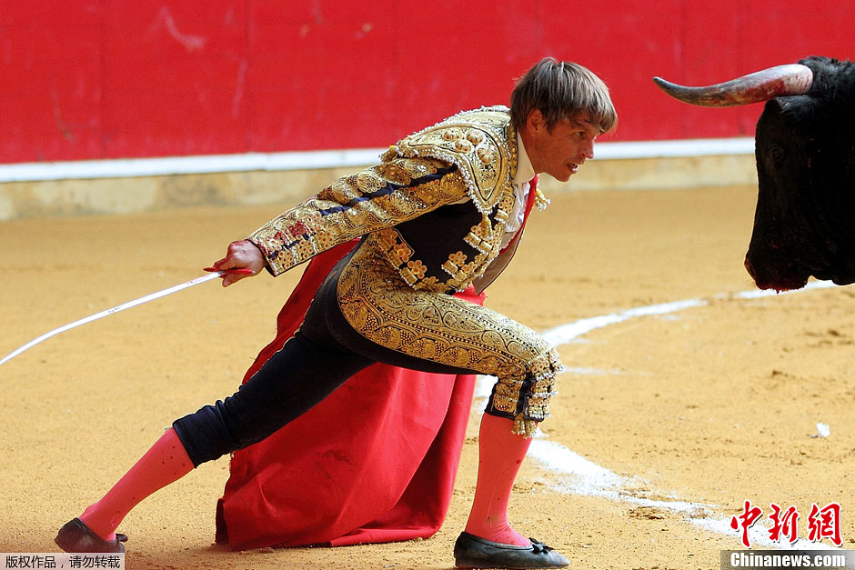 西班牙萨拉戈萨斗牛节 玩的是刺激