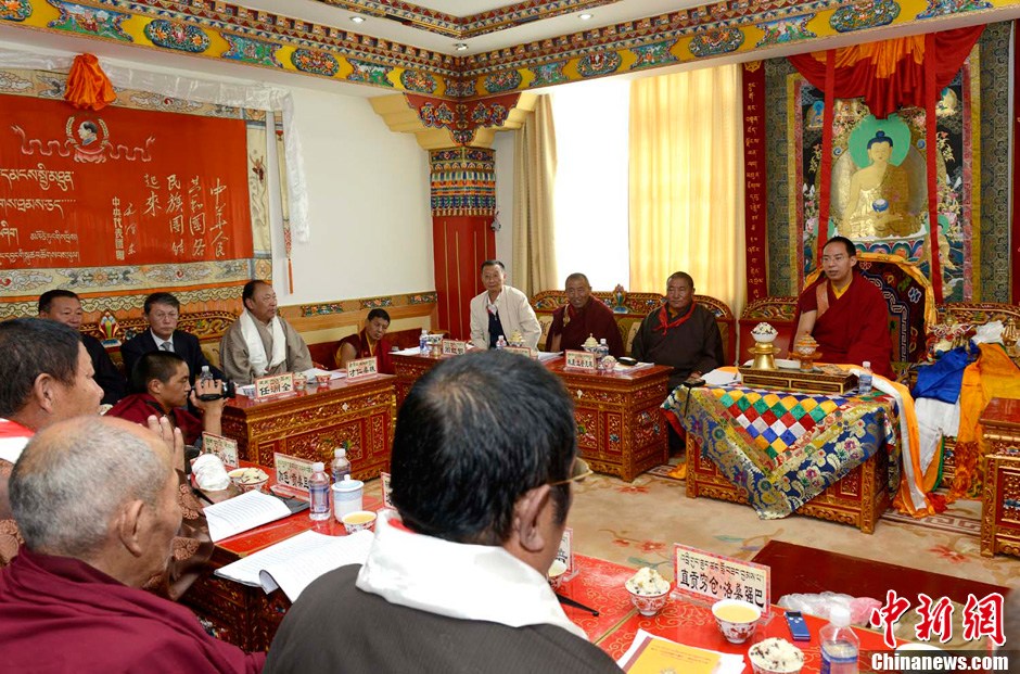 8月29日,班禅额尔德尼·确吉杰布来到佛协西藏分会参观并与与西藏宗教界人士座谈。李林 摄