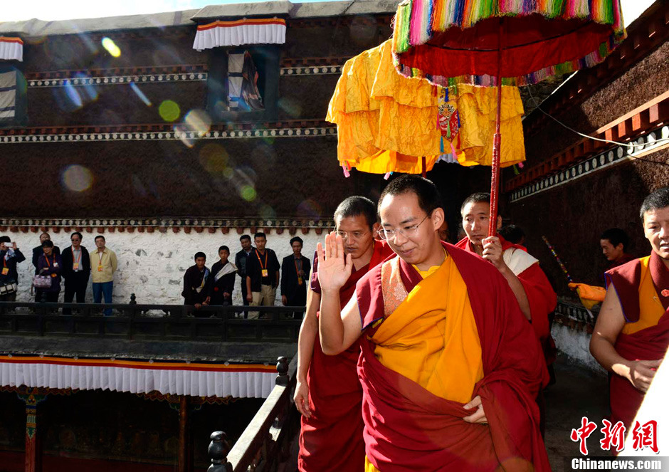 9月5日,班禅朝拜了扎什伦布寺的主要殿堂,近千名僧俗信众和游客闻讯在扎什伦布寺多加大院等地翘首等待,班禅向人群挥手致意。李林 摄