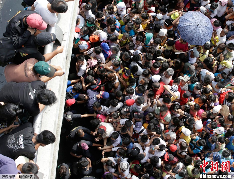 菲律宾民众领取救援物资 人山人海致交通瘫痪