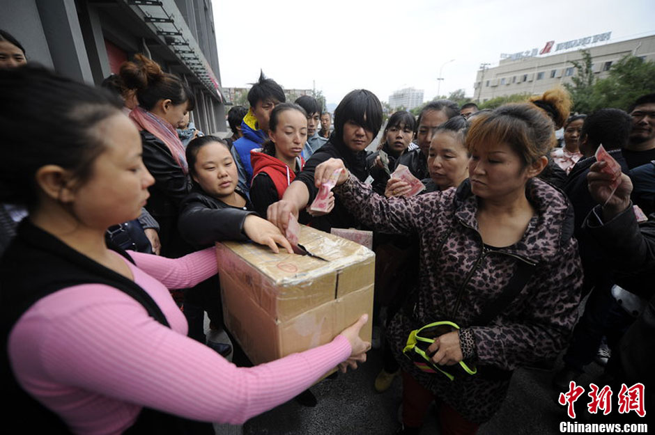 10月14日,北京,喜隆多商户前来悼念烈士并为其遗属捐款。图为喜隆多商户为牺牲的消防员遗属捐款。陶冉 摄 图片来源:CFP视觉中国
