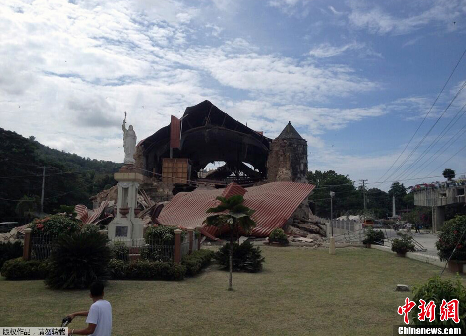 当地时间10月15日,菲律宾保和省早上发生7.2级地震,据当地官方称已造成4人遇难。图为地震中被毁坏的房屋。