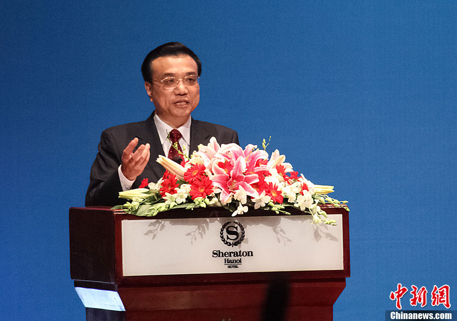 10月15日,中国国务院总理李克强在越南河内出席中越工商界午餐会并讲话。中新社发 郭金超 摄