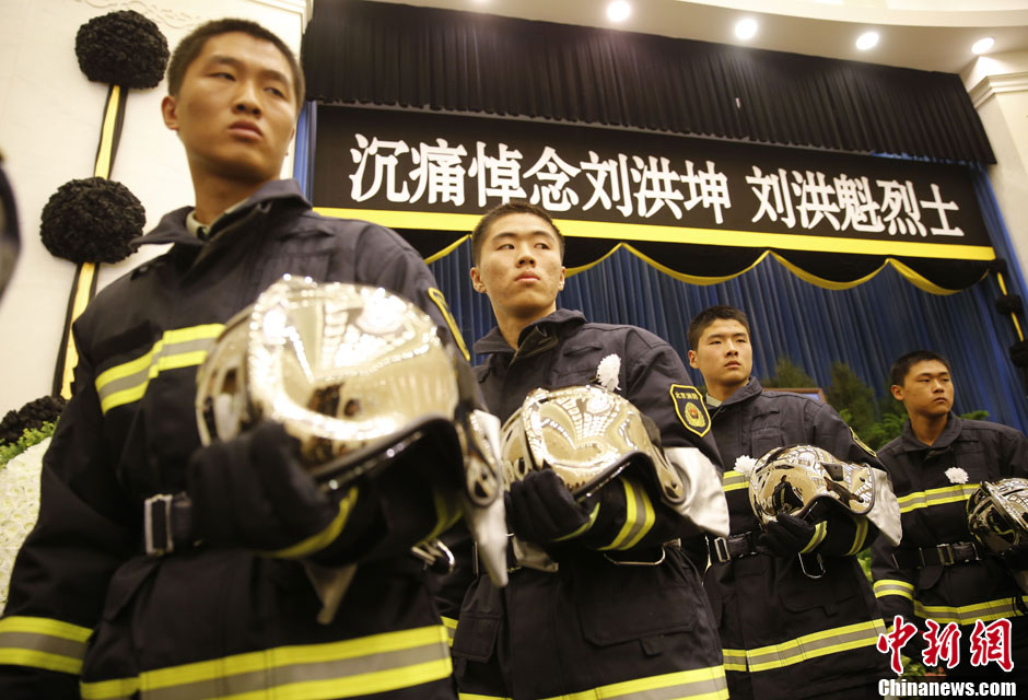 10月17日,刘洪坤、刘洪魁烈士遗体告别仪式在北京八宝山革命公墓礼堂举行。中新社发 盛佳鹏 摄