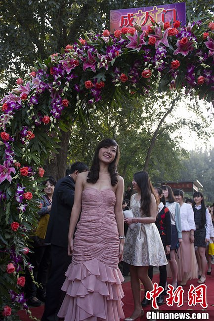 10月17日,参加成人礼的学生走过“成人门”,接受师长和同学的祝福。当日,来自北京101中学的600名高三学生在圆明园大水法前举行集体成人礼,在即将开始的高考冲刺前,鉴证自己与同学共同的18岁生日。中新社发 崔楠 摄