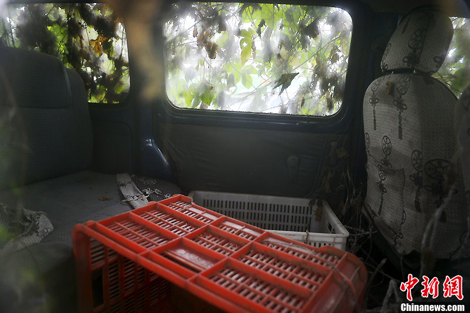 成都一轿车久停长满藤蔓 变成“僵尸车”