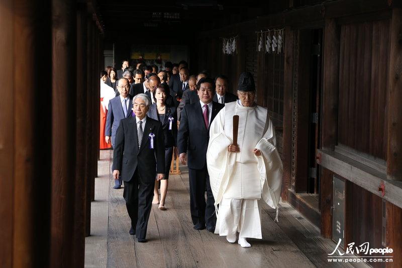 “大家一起来参拜靖国神社国会议员会”是日本跨党派国会议员的一个组织。组成人员多是日本政坛重磅人物,包括现任首相安倍晋三,三位前首相和若干前任、现任内阁大臣等。(赵松、李润泽) 图片来源:人民网