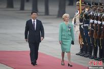 10月18日,中国国家主席习近平在北京人民大会堂与加拿大总督戴维·约翰斯顿会谈。中新社发 廖攀 摄