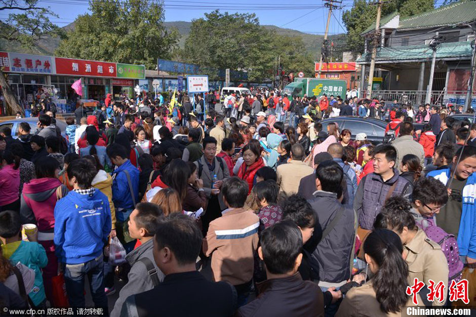 10月19日,北京香山红叶节迎来了“真正”的赏红高峰,大批赏红游客前往香山。据悉,香山周边停车场上午8点就已饱和。林晖 摄 图片来源:CFP视觉中国