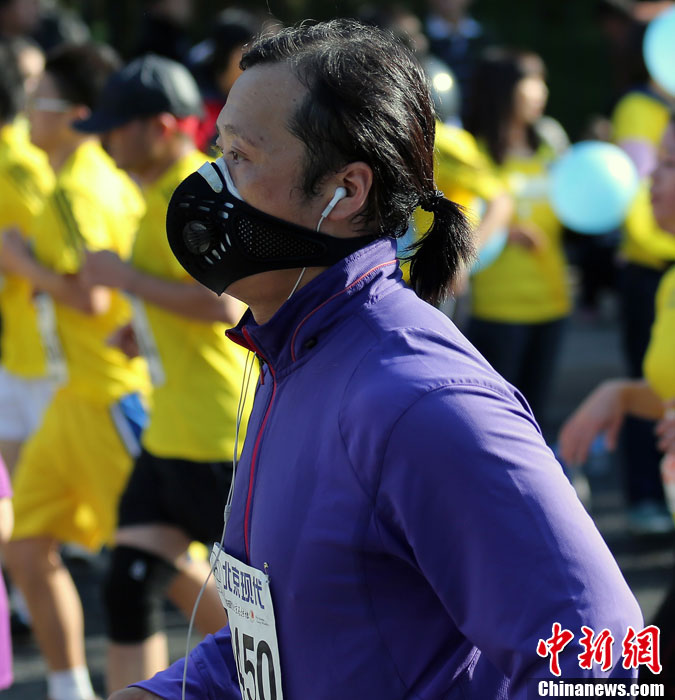 2013北京马拉松:跑友戴口罩参赛