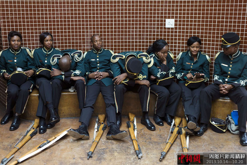 等待:当地时间10月14日,南非比勒陀利亚的自由公园(Freedom Park)内,南非士兵正在等待法国总统奥朗德(Francois Hollande)的到来。前来进行国事访问的奥朗德对南非为维护地区稳定所做出的努力给予了肯定。