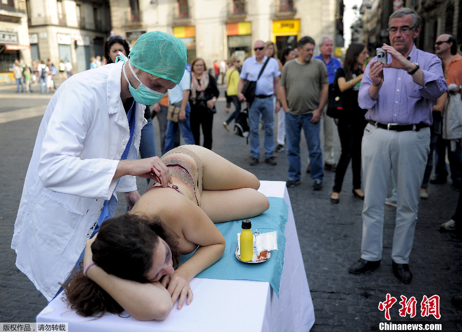 西班牙美女“裸体”抗议动物实验