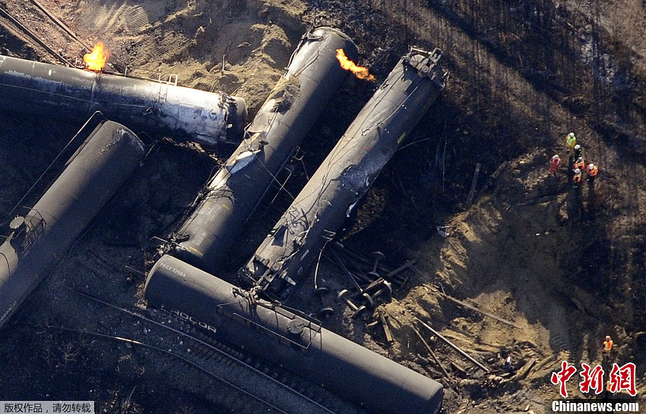 加拿大运油火车脱轨爆炸 周边住户被疏散