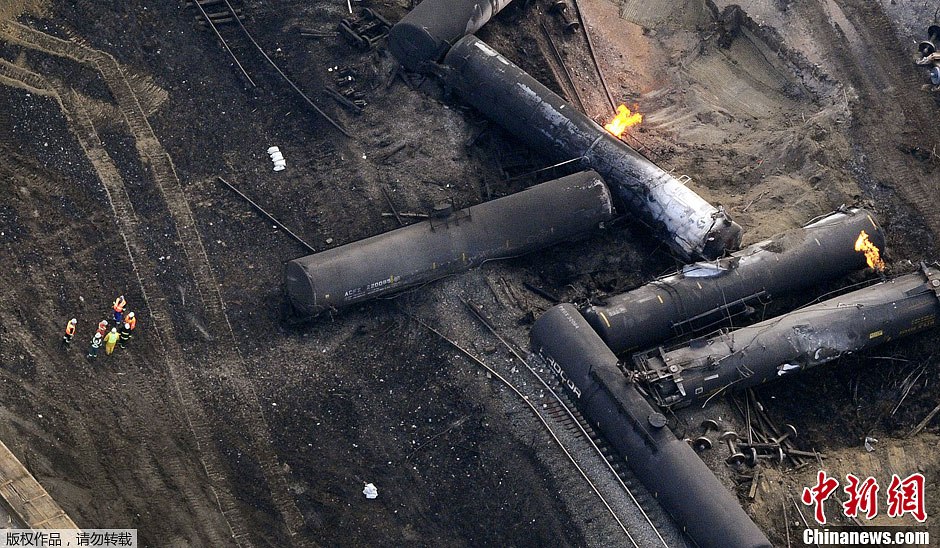 加拿大运油火车脱轨爆炸 周边住户被疏散