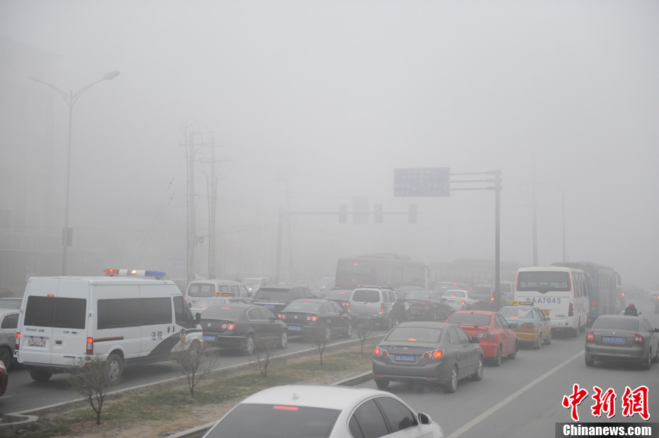 长春雾霾天气升级PM2.5“爆表”