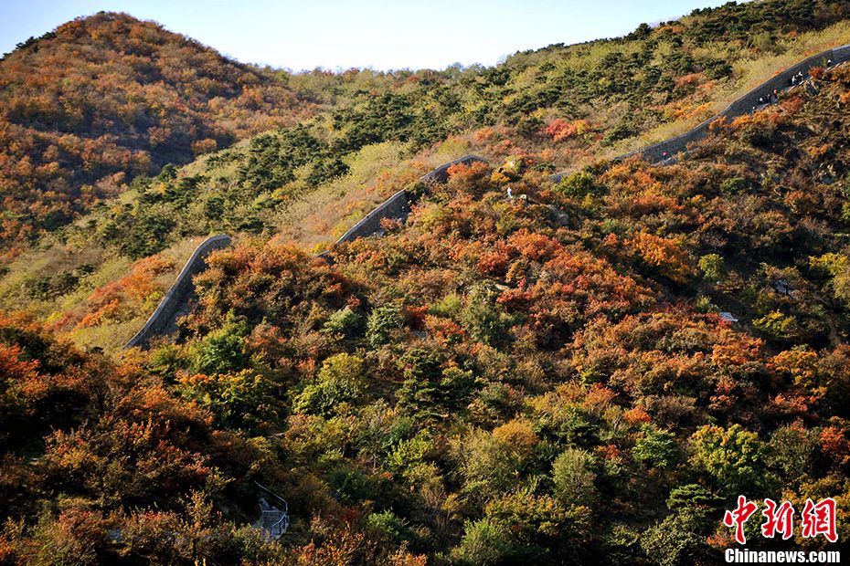 近日,霜降节气的到来,香山红叶也进入了层林尽染、漫山红遍、如火如荼的最佳观赏季节。10月24日,据香山红叶物候观测小组的最新统计数据显示,目前全园红叶的平均变色率达到了60%。香山公园为广大游客推荐:静翠湖、香炉峰、山杏林、看云起亭、森玉笏亭、玉华岫、青未了、隔云钟等8处观看红叶的最佳景点,乘坐索道凌空观赏红叶将成为游客最为热捧的一条游览路线。中新网记者 金硕 摄